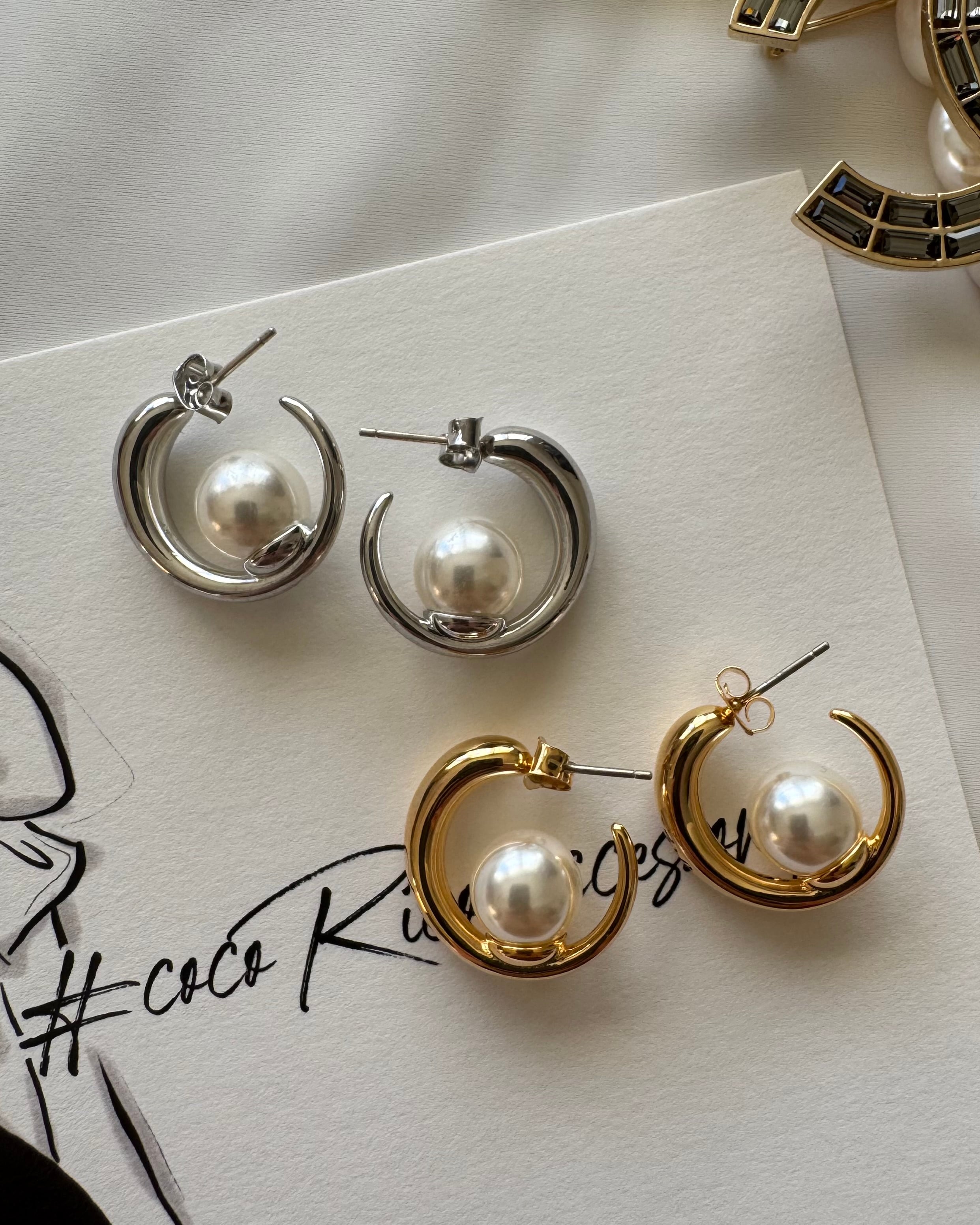 程よい大きさのパールを包み込むメタル部分が